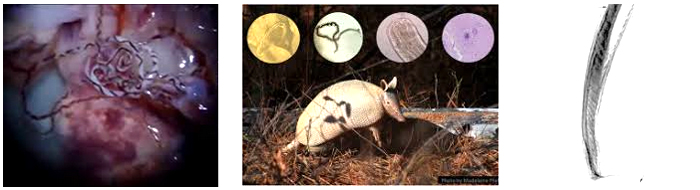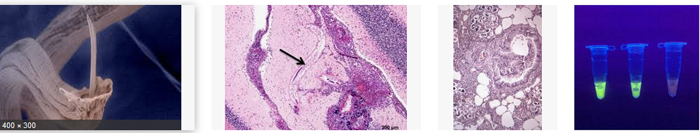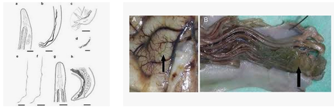 Angiostrongylus cantonensis: lesions in brain and spinal cord, Angiostrongylus cantonensis meningitis in two developmentally delayed children: findings in brain images, Lung CT findings of angiostrongyliasis cantonensis caused by Angiostrongylus cantonensis, Parastrongylus cantonensis in a nonhuman primate, Florida...