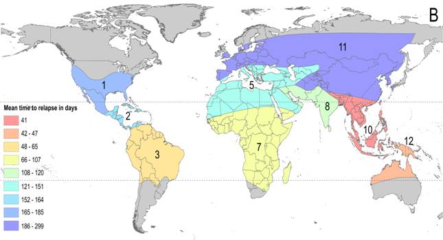 44.Katherine E Battle, Markku S Karhunen, Samir Bhattet al., (2014). Geographical variation inPlasmodium vivaxrelapse.Malaria Journal2014, 13:144.