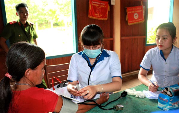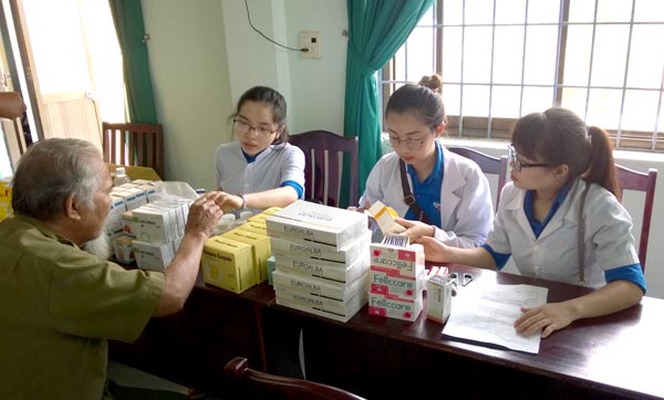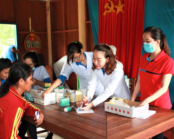 Young physicians of IMPE-Quy Nhon giving medical advices, voluntary examination and free medicines tothe people. |