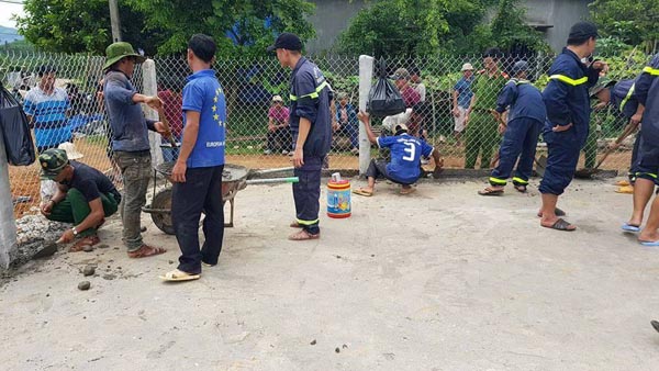 Cleaning and building the cement yard for the Cultural House of Hamlet 5, An Trung commune, An Lao district. |