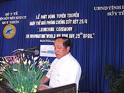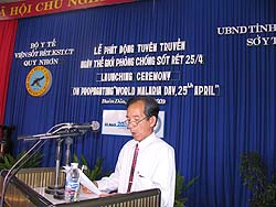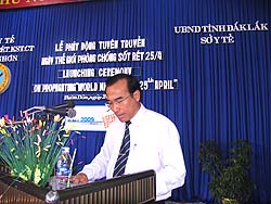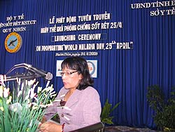 Up to now malaria is still a threat to human life. The World Health Organisation (WHO) takes the 25th April annually as The World Malaria Day with the aims of warning countries of the worsening problems in malaria control, at the same time raising awareness and understanding of malaria and mobilising communities into malaria control activities in the malaria-endemic areas. In our country, due to the effectiveness of malaria control programme, the nationwide incidence of malaria has tended to decline drastically, but the risk of malaria is still high in the coastal and highlands provinces of Central Vietnam, with the morbidity rate of nearly 50%, the mortality rate of over 80% compared with the whole country and endemic outbreaks happening at anytime; the malaria control activities face a lot of difficulties due to the uncontrollable management of the malaria cases from mobilised communities on plantations, those spending the night in mountain fields, and those crossing the borders. The malaria situation in Dak Lak province and the Central Vietnam is rather complex with unstable malaria control results. This is because of the ability of the grass-roots health network (district, communal, village levels), not being able to detect early and treat promptly malaria patients, together with the people without any self-protection measures upon entering malaria-endemic areas. That Buon Don district (a highly-endemic area of malaria) was chosen as the focus of the World Malaria Day Campaign has not been only the significance of technical aspect but also political one as mobilizing all West Highlands communities to actively respond to the malaria control campaign. The message on the second World Malaria Day 2009 launched from the ceremony in Dak Lak Province in particular and the Central Vietnam in general included: