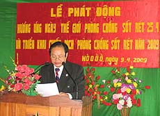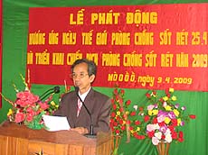 Speaking at the ceremony, Trieu Nguyen Trung MD., Ph.D, Director of IMPE Quy Nhon stated the aims, meanings, importance of the World Malaria Day and launched malaria control campaign in Quang Binh province in particular and the Central Vietnam in general for 2009: concentrating to roll back malaria in highly-endemic areas and developing sustainable factors to prevent the return of malaria, coming to eliminate malaria following the targets of the World Health Organization (WHO); achieving the targets of malaria entrusted by the Ministry of Health in terms of reducing malaria morbidity and mortality, and no malaria epidemic at the locality.