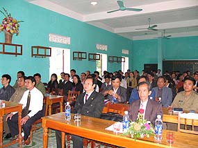 Attending the ceremony at Mo O O O village were the leaders of Quang Binh Health Department, the leaders of the Institude of Malariology Parasitology and Entomology Quy Nhon, leaders and professional staff of the District Health Centers in the province, leaders and staff of the Provincial Center for the Prevention of Malaria and Iodine Deficiency Disorders, the leaders of Vietnam-Cuba Dong Hoi Central Hospital, the Military Medical Units garrisoning in the province, other relating sector and the Quang Binh Radio Television and Quang Binh newspapers.
