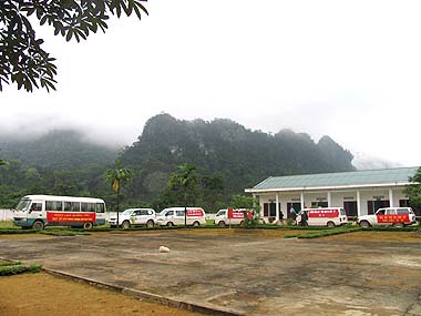 Situated at about 100km north-west of Dong Hoi City, Mo O O O village of Thuong Hoa commune (Minh Hoa district) was chosen with the Military Post No.585 to host the propagating ceremony of lauching the World Malaria Day for the whole province of Quang Binh this year. In order to reach this place, we had to take a farther famous Truong Son Highway, crossing the "World Heritage Phong Nha - Ke Bang", and "Tam Co Cavern", where 8 heroins laid down for the national independence in the anti-American War. The village of Mo O O O has a few hundred people, mainly the Ruc ethnic. Previously, the Ruc practised a mobilised way of living, tramping from caves to caves in deep forests for animal hunting and fruit picking. However, thanks to the attention of the Government and especially the mobilization of frontier guard soldiers, they have settled in state-supported houses. Nevertheless, they are still facing a great deal of difficulties and epidemic diseases, especially malaria.